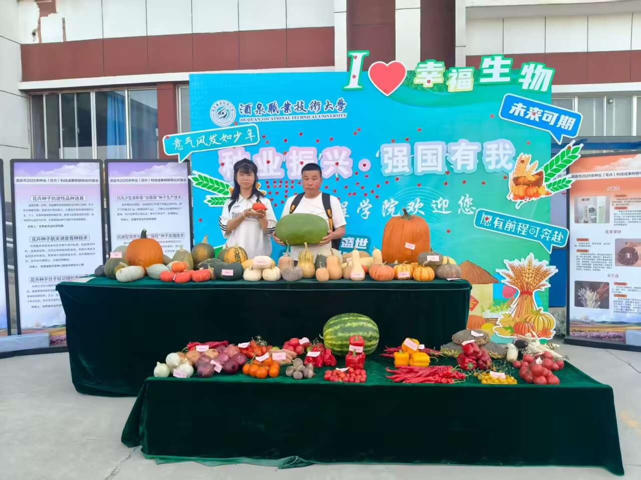 为了给每一位“萌新”留下美好的开学回忆,学院用心用情以独特的学科视角迎接新生到来,让新生初入校园便与专业“零距离”接触。逸夫楼下布置了独具生物特点的背景墙、特色作物种子展示区、趣味“打卡拍照”主题喷绘等,吸引不少新生拍照打卡。同时,展示区陈列了不同类别的特色作物,迎新现场学院志愿者化身 “种子讲解员”,向新生及家长介绍各类作物背后的学科故事。不少新生驻足观看,拿起仔细观察,主动询问专业相关问题,现场学习氛围浓厚。