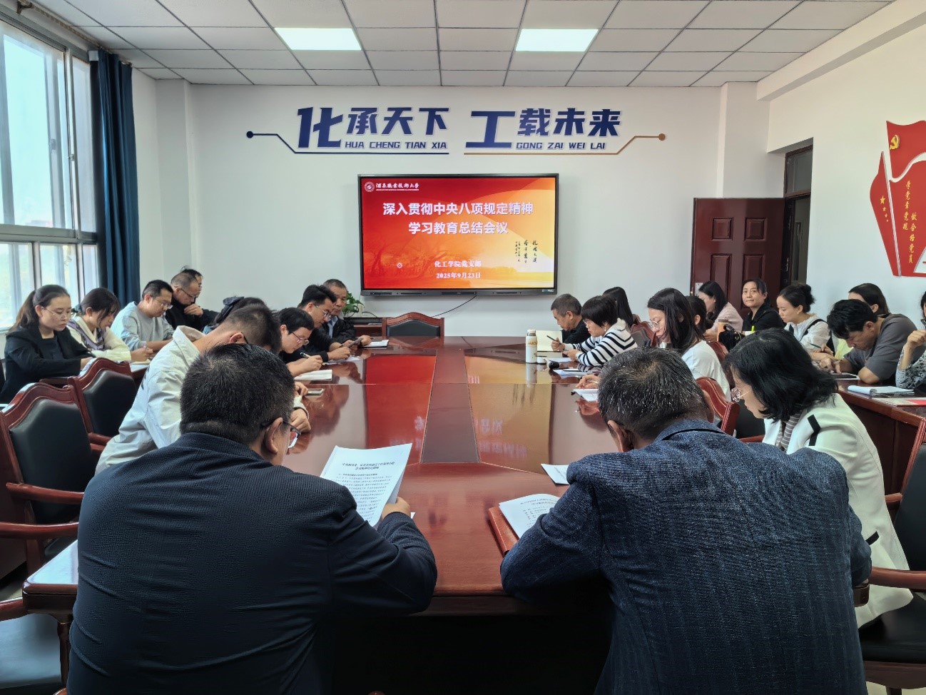 9月23日下午,化工学院在逸夫楼二楼会议室召开深入贯彻中央八项规定精神学习教育总结会议。学院党支部书记白锦川主持会议,全体党员、教师参会。