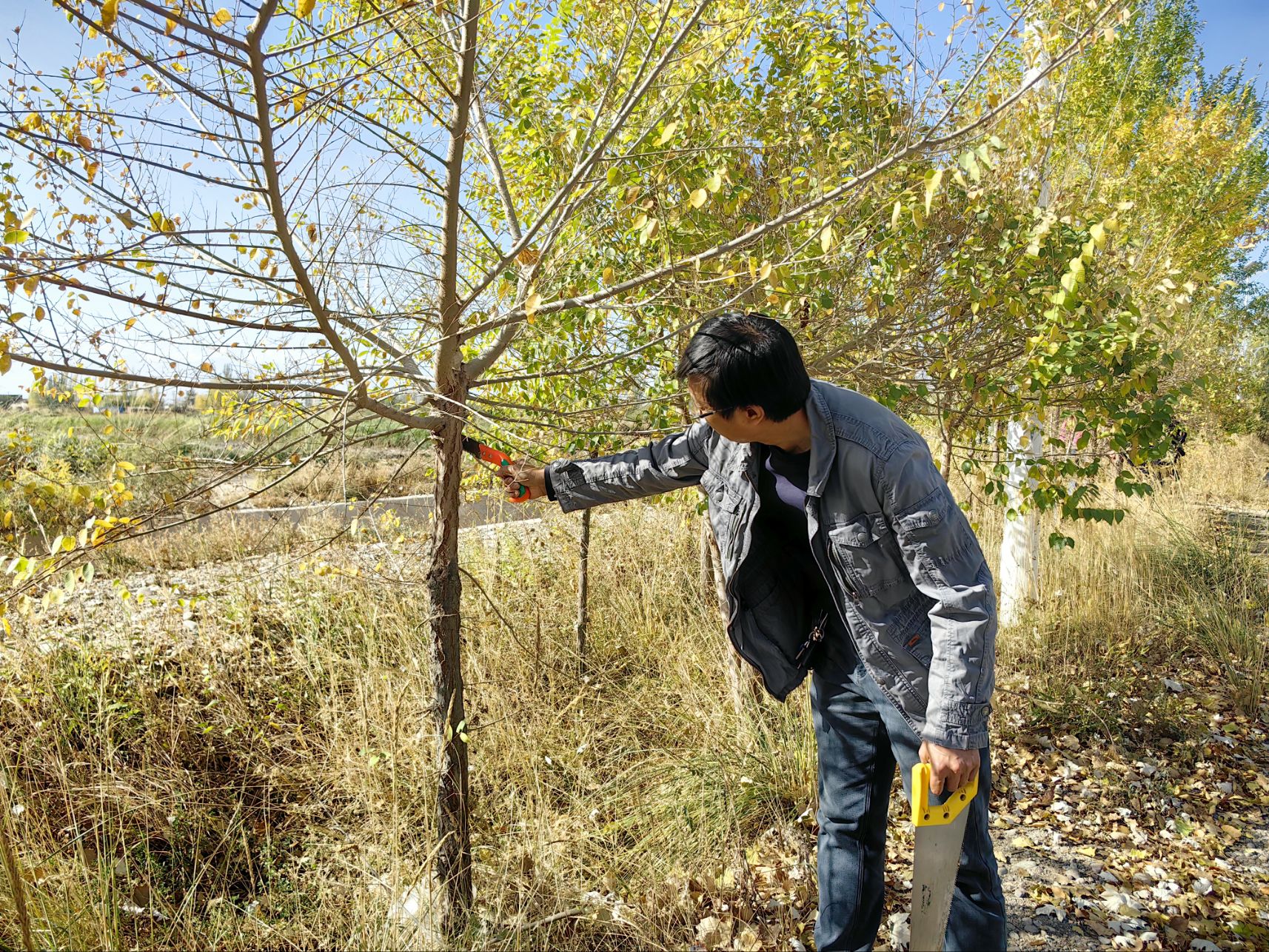 理论学习结束后,双方党员共同前往丁家闸村果树种植园,开展果树修剪主题实践活动。学院党员教师化身“技术指导员”,现场示范修剪操作:从判断病弱枝、交叉枝的修剪要点,到根据果树品种调整修剪角度,逐一讲解关键技术。