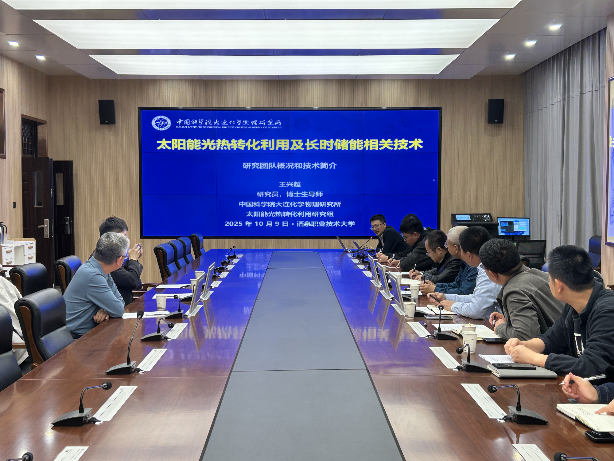2025年10月10日,中国科学院大连化学物理研究所王兴超研究员与北京绿色交易所专家王培军等一行3人来我校考察交流。新能源研究院、科研处、低空经济现代产业学院、新能源工程学院相关负责人及新能源研究院全体教师、新能源工程学院相关专业教师参加座谈交流。