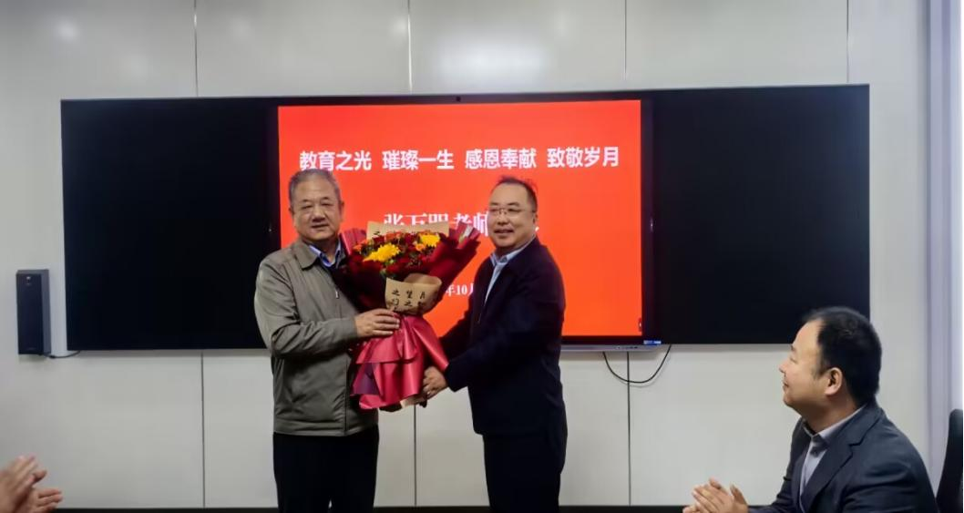 一支粉笔绘春秋,三尺讲台写华章。张万明老师以三十余载躬耕杏坛的坚守,将峥嵘岁月镌刻成育人史诗;用一生秉烛的赤诚,将教育初心熔铸成精神丰碑。为致敬这份深耕不辍的教育情怀、铭记退休教师为学校教育事业发展所做出的贡献、传承尊师重道的优良传统,10月14日上午,机电工程学院以"薪火相传守初心,荣休礼赞育新人"为主题,为张万明老师举办了一场温情与敬意交融的荣休仪式。