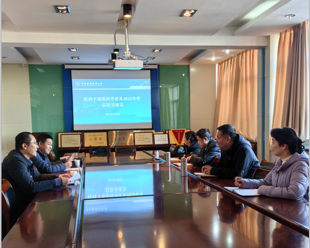 2025 年 12 月 8 日下午,酒泉职业技术大学乡村振兴学院召开驻村干部第四季度及2025年度工作总结交流会。会议旨在全面复盘年度驻村帮扶工作成效,梳理经验、查摆不足,精准谋划 2026 年帮扶工作思路,持续推动巩固拓展脱贫攻坚成果同乡村振兴有效衔接。继续教育学院党支部书记王瑜珲及班子成员出席会议,全体驻村干部参会交流。