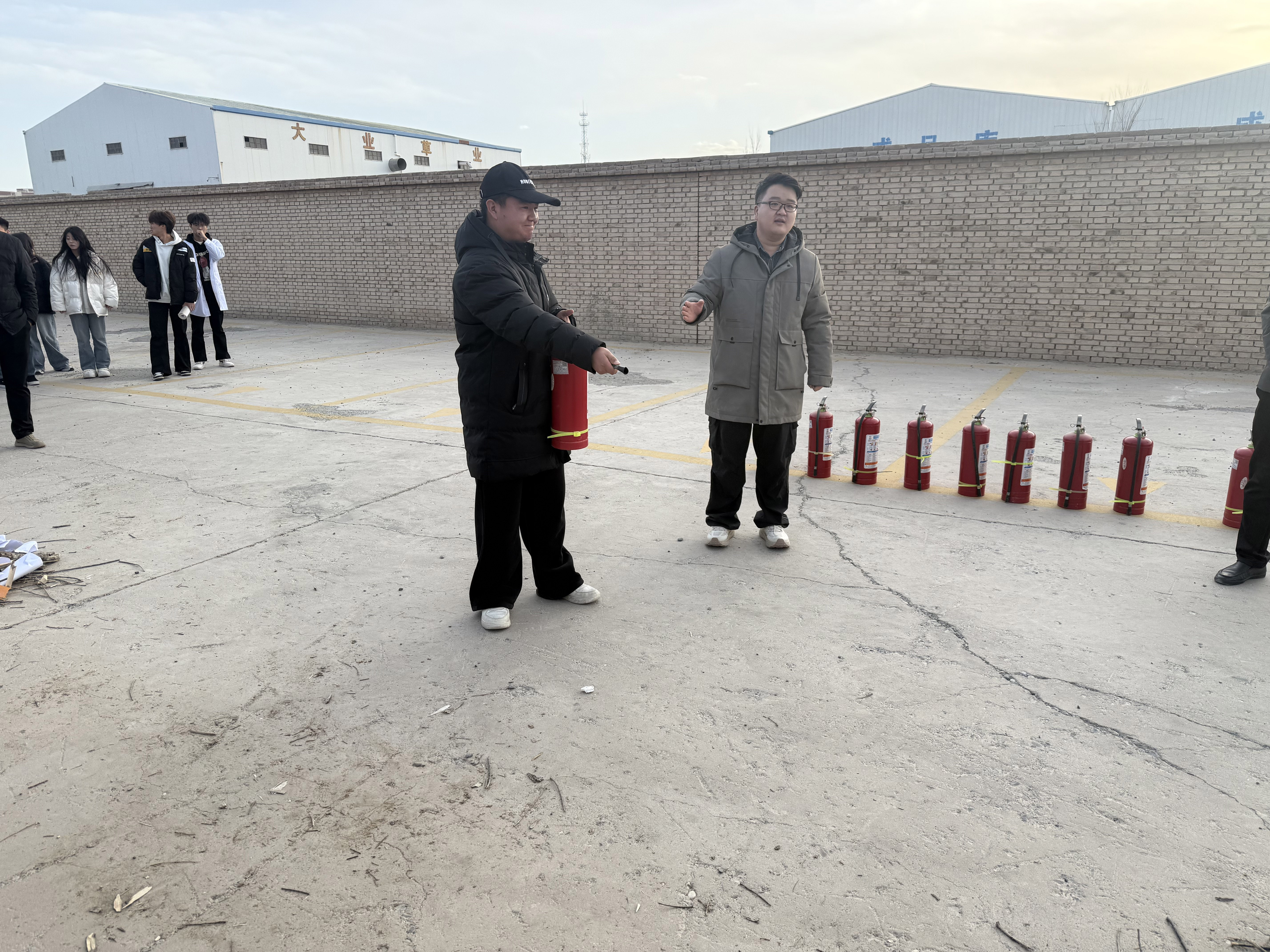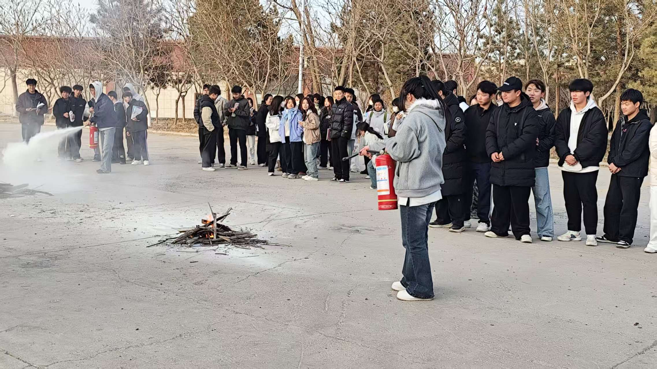 疏散演练结束后,学院副院长张又元为师生们进行现场点评和消防知识讲解,充分肯定了师生们在演练中的表现,同时也指出了存在的问题和不足之处,并邀请维保顺安公司朱家骐现场演示了灭火器的正确使用方法,邀请师生代表进行实际操作体验。