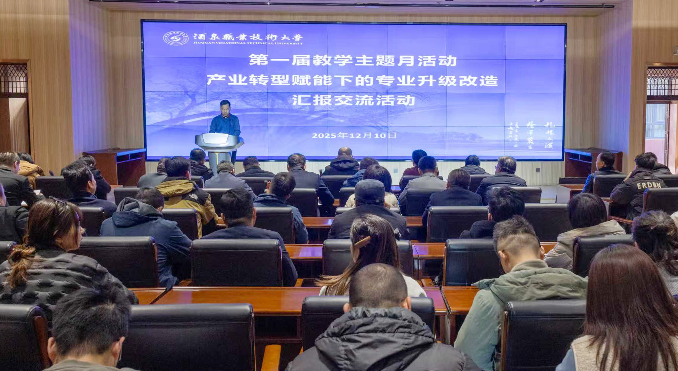 要闻快递 > 正文为主动适应产业升级与区域发展新需求,推动产教融合走深走实,深化专业内涵建设,提升人才培养适应性。2025年12月10日下午,学校在弘毅楼C座102会议室召开产业转型赋能专业升级改造汇报交流会。学校党委委员、副校长杨洁出席会议。各学院教学副院长、系主任、专业带头人及骨干教师代表参加会议。本次汇报交流会是学校教学主题月系列活动之一,旨在为各学院提供交流平台,促进专业建设与区域产业协同发展,凝聚共识,共同探索人才培养新路径。